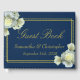 Elegant Navy Blue Guld Script Vit ros Bröllop Gästböcker