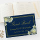 Elegant Navy Blue Guld Script Vit ros Bröllop Gästböcker