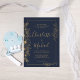Elegant Navy Blue och Guld Blommigt Ram Bröllop Inbjudningar
