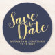 Elegant Navy Blue och Guld Bröllop spara datum Underlägg Papper Rund
