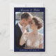 Create your own custom photo wedding save the dates in a luxurious old money style. Add your personalized details announcing your wedding day in elegant, timeless typography featured in navy blue color design.