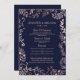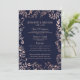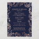 Elegant Navy Blue Ro Guld Blommigt Bröllop Menu Meny