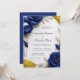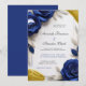Elegant Navy Blue Roses & Gold Glitter Wedding Inbjudningar