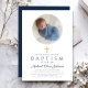 Elegant Navy Blue Script Boy Photo Baptism Inbjudningar