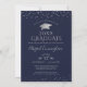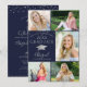 Elegant Navy Blue Silver Photo Collage Student Inbjudningar