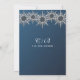 Elegant Blå snöflingan i Silver Sparar Datumet har marin blå bakgrund, snö flagga i silver och en modern textmall. På baksidan av kortet finns en mall i initialer i namn. En perfekt som matchar bröllop-dekorationen som vinter, modernt, romantiskt och lyxtema.Klicka på personlighetsknappen om du vill anpassa den med din egen text.