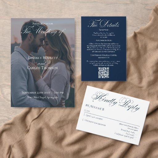 Elegant Navy Blue Wedding Dinner Menu & Bar Menu Meny
