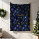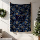 Elegant Navy Gold Blanket Custom Name Floral Art Fleecefilt
