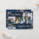 Elegant, Modern Guld och Navy Botanical Löv 4 Photo Collage God jul Helgdag Card. Den här festliga, minimalistiska, vimisiga fyra (4) fotokortsmallen innehåller ett söt fotokollage, faux guld foil botanical löv, winterbär och säger God jul och Gott nytt år! Texten "God jul och Gott nytt år" hälsning är skriven med ett vackert handskrivet typsnitt på marinblå färg. På motsatt sida vågräna ett foto med guld ram och faux guld arrangemangt på marinen. Söt-kort för din familj och dina vänner under denna jul och Julhelg.