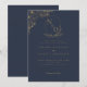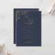 Den här minimalistiska bröllopsinbjudan har en elegant marin blå bakgrund med lyxig guld blommigt konst och ett förfinat initialer monogram i ett ovalt ram. Perfekt för modernt, klassiskt eller formellt bröllop, som ger en tidslängd och romantisk känsla. Anpassade enkelt till kostym din speciella dag.