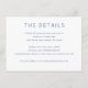 This wedding enclosure card features a minimalist design with a clean, elegant layout that emphasizes clarity and sophistication. The deep navy blue text on a white background creates a professional and straightforward appearance, while the classic serif font adds a touch of formality. Perfect for conveying important logistical details, this card is ideal for weddings, ensuring guests have all the necessary information in a visually appealing manner.