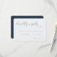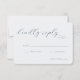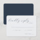 This elegant wedding RSVP card features a minimalist design with a clean, modern layout. The soft light gray background complements the deep navy blue script-style font that reads "kindly reply," creating a sophisticated and formal tone. Customizable fields allow guests to indicate their attendance status and number of attendees, while ample negative space ensures clarity and simplicity. Perfect for formal events, this card combines functionality with an uncluttered aesthetic, making it ideal for couples seeking a refined touch for their wedding invitations.