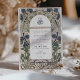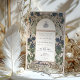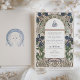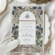 Den här lyxiga inbjudan till bröllopsinbjudan i Art nouveau har en vackert intrikad blommigt i rikens blått, grönt och lavender på en pristinvit bakgrund. Den detaljerade grafiken ramar beskriver bröllop och innehåller elegant arabisk kalligrafi, vilket ger en unik och kulturell beröring. Inbjudan visar en harmonisk blandning av klassiskt Art nouveau inslag med en modern tvist, perfekt för par som uppskattar tidlös skönhet och kulturelegans. Det matchande monogrammet på baksidan förstärker ytterligare den sofistikerade appellen. Den här inbjudan är perfekt för uppskalning av bröllop, och du kommer säkert att imponera på dina gäster och ange tonen för en oförglömlig händelse.