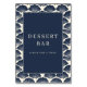 This elegant wedding tabletop sign features a square layout with a central navy blue rectangle surrounded by a repeating pattern of stylized shell motifs in a deep blue color. The design uses clean, uppercase serif typography to highlight the inviting message "DESSERT BAR" and "PLEASE TAKE A TREAT!" creating a sophisticated and classic look perfect for an event setting. The balanced composition and limited color palette convey a mood of refinement and celebration, making it ideal for guiding guests to indulge in sweet treats at your special occasion.