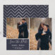 Den här moderna Spara datumet har en ställe för 2 foton och är skriven i ett handskript. Det finns silver gräns kring bilderna.