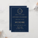Elegant Navyblå Guld Monogram QR-kod Bröllop Inbjudningar