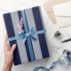 Elegant Navyblå Ljusblå Randig Mönster Presentpapper
