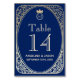 Elegant Navyblå och Guld Bröllops Bordnummer. Stylish, klassisk, sofistikerad.