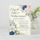 Elegant Navyblå och Rosafärgad Blommig Bröllopsinb Inbjudningar
