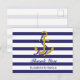 Anpassa denna eleganta och stilrena moderna sjöfartsbröllopsdekal. Marinblått och vitt randigt mönster med ett marint ankare högst upp. En mall för enkel anpassning av dina bröllopsdetaljer som namnen på brud och brudgum samt bröllopsdatum. Samma design finns i andra matchande bröllopskort och tillbehör för att föra det nautiska bröllopstemat i stil.