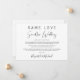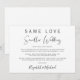 Modern och elegant mindre nedtonad bröllopsinbjudan. "Samma kärlek, mindre bröllop" är skrivet med en kombination av enkel typografi och ett modernt handskriftsstil. Du kan enkelt anpassa ditt meddelande, lägga till era namn i en signaturliknande stil och lägga till er bröllopswebbplats på baksidan för era vänner och familj att hitta mer information, som till exempel länkar till webbsändning av ceremonin.