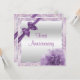 Vacker, klassisk, elegant och sofistikerad 1-årsjubileumsmall för bröllopsinbjudan för par. Detta är en söt design med en vacker lila hörnknejlik i det nedre högra hörnet och en lila silkesbåge i det övre vänstra hörnet tryckt på en silverfärgad gradientbakgrund med en blank lila och silverfärgad ram, bakom finns en ytterligare kant av en vacker lila gradient täckt med ett vackert silverfärgat damaskusmönster med virvlar och blomsterornament. Nejlikan representerar den traditionella blomman för 1-års bröllopsjubileum. Detta är en klassisk, modern blomdesign för er första bröllopsdag. Anpassa denna mall med din egen text för din fest genom att lägga till dina festdetaljer, typsnitt, teckenstorlek och färg, samt formulering.