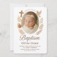 Denna design har ett mjukt ovalt barnfoto omgivet av ömtåliga beige botaniska accenter, en flygande duva och ett enkelt träkors. Den varma neutrala färgpaletten och den graciösa skrivstilstypografin skapar ett lugnt, trofyllt utseende som känns tidlöst och raffinerat. Den är särskilt tilltalande för en dop- eller dopcelebration med sin milda, andliga bildvärld och klassiska layout. Den övergripande stilen blandar modern minimalism med traditionell religiös symbolism för en vacker souvenirdesign.