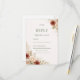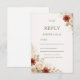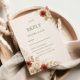 A soft and elegant design featuring neutral tones complemented by delicate floral accents in cream and muted rust shades. The clean layout with refined typography provides a clear and stylish way for guests to confirm attendance and preferences. The natural botanical elements add a warm and timeless touch to the overall composition.