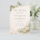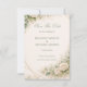 A soft and refined design featuring a textured neutral background complemented by delicate greenery and cream floral accents. The subtle botanical elements and muted tones create a calm, elegant, and timeless atmosphere. The balanced composition offers a graceful way to announce a special moment with a natural and sophisticated aesthetic.