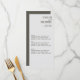 Förbättra din bröllop-matupplevelse med den här elegant bröllop-menyn, designad för att komplettera vår inbjudan till neutralt. Med en sofistikerad palett i neutralt färg och en delikat illustration av en blomma visar den här menyn hur elegant och charm som inte går att ta tag i. Anpassa texten så att den återspeglar dina unika kulinariska val, vilket ger dina gäster en trevlig förhandsgranskning av kulinariskt ljus för kom. Den här bröllop-menyn är perfekt för par som vill ha en klassisk men modern design och ger dig en smula förfining och sofistikering till dina inställningar för bord.