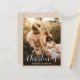 Modern julkort med ett enkelt och minimalt format med "God jul" i ett skript för elegant över bild som du föredrar och som omges av ett netural ljusbeige gräns. På framsidan finns ett övertäckt övertoning för att texten ska kunna stå ut, vilket kan tas bort i designredigeringen i verktyg om du vill. Baksidan har en fotokollage med tre foton tillsammans med ditt personlig-meddelande.