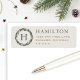 Pressa upp kuverten i stil! Den här returadressetiketten har en vattenfärg som målas ut med vattenfärgen grön krans med bitar av gräs, bär och pinekonar. Systemet med neutralt färg omfattar grönt, vitt guld metalliskt, brunt, benvitt och skarpt vitt färger. Anpassa med anpassningsbarnas monogramsstart och returadress.
