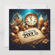 Ett lyxigt nyårskort för 2025, med en elegant gyllene design som fångar den festliga känslan av nyårsafton. Med en klassisk klocka, ljus och vackert inslagna presenter, ger detta kort en touch av sofistikation till varje firande