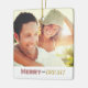 Snyggt Minimalist helgdag Newlyed Couple, familjefotoprydnad med modern typografi som lyder "Merry and Bright". På baksidan kan du lägga till namn eller namn i en elegant-handskriven kalligrafi.