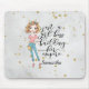 Den här musmattan har en elegant kvinna med texten "Bara en flicka chef som bygger sitt imperium". Det här kan vara personlig med ditt namn i elegantens kalligrafi. Den har en sparsam grått-bakgrund.