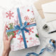 Den fina juldesignen i mönster med ett julklapp för kalligrafi, vackra illustrationer i snöflingor i rött, på hullerbär och vinterkörsbär i grenar, gräs grenar och på frukt. Glad helg!