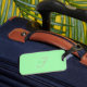 Modern och snyggt bagagemärkesdesign med en pastellbakgrund och initialer.