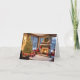"En klassisk scen i helgdag dyker upp i detta julkort, med ett stort träd med twinkling ljus, gåvor inslagna med försiktighet och en mysigt kamratinställning. Perfekt för att dela säsongens värme."