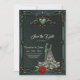Elegant och romantisk vintage. Den mörk grönt bakgrunden till vintagen är ge som formger en tidlös beröring, medan ram på ett harmoniskt sätt omger hela bilden. Ett stort grönt som framträder med delikata guld-accenter och som är inbäddat i en dekorativ blomning symboliserar parets kärlek och anslutning. Huvudinriktningen ligger på den hjärtligt designade silhuetten av en brud och en grav som förenas i en graciös dans.