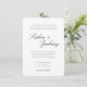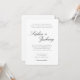 Denna utsökta lätta och luftiga bröllopsinbjudan är en elegant och tidlös design som pryds av en delikat kalligrafisk teckensnitt, vilket accentuerar dess övergripande attraktion. Den milda enkelheten i skriften genomsyrar inbjudan med en mjuk och romantisk essens, vilket gör den till det perfekta valet för ett drömlikt elegant bröllop.