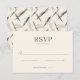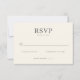 This elegant wedding RSVP card features a minimalist design with an off-white background and muted gray typography. The layout is clean, with bold serif fonts highlighting the RSVP request and date, while ample negative space enhances readability. Personalization options include a cursive initial placeholder and clear response choices for acceptance or decline, along with a section to note the number of attendees. The sophisticated and understated style conveys formality and refinement, making it perfect for formal events.