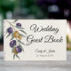 Denna gäst i bröllop bok har en olivdesign. Elegantens olivmotiv i kombination med gröntens bladverk och oliver fångar upp en tidlös Medelhavscharm. Anpassa gästen bok genom att lägga till datum för namn och bröllop på framsidan och på ryggraden.