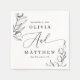 Lägg till elegans i bröllop bord med det här anpassadet napkin med en delikat illustration av oliver gren i hand plockade och en modern svart manustypografi. Den minimalistiska svarta och vita utformningen ger en förfinad Medelhavsmodell och italiensk inspirerad beröring, perfekt för bröllopsmottagningar, repetitionsmiddagar och förlovningsfester.