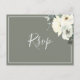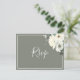 This simple elegantolive green RSVP postcard features a watercolor ivory floral design with elegant script font.