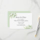 Spara datumkortet med grönt vattenfärgsolivolja gren för bröllop firande.