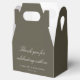 This elegant wedding favor box features an olive background with classic script typography for a refined, timeless look. Personalized with your names and wedding date, it’s an elevated way to present treats, small gifts, or welcome favors for guests. The structured design feels polished and intentional while coordinating seamlessly with classic, formal, and evening wedding stationery. A thoughtful finishing touch for couples who want cohesive wedding favors that feel elegant and memorable.