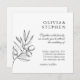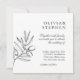 Elegant modern svartvit grenar-oliver. Enkel traditionell bröllopsinbjudan med en handdragen löv. En del av en samling i bröllop.