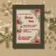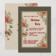 Denna anpassningsbara eleganta julkort omges av en stilren dubbel ram med en yttre olivgrön kant och en inre elfenbensfärgad färg. Festliga julstjärnor och tallgrenar i rik röd och mörk oliv nyans ger layouten en säsongsbetonad charm. Framsidan visar inbjudan till julfesten med alla evenemangets detaljer, medan baksidan delar en varm julhälsning till dina gäster. En tidlös och festlig design perfekt för att fira högtiden med elegans.