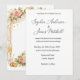 En lyxig och romantisk täckande design för bröllopsinbjudan med eleganta blomsterdetaljer, gyllene bröllopsringar och en raffinerad guldram.