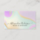 Vi presenterar ditt företag med elegans och stil med hjälp av det här affärskortet för pastellövertoning och guld-våg. Utformningen har mjuka, flytande skuggor av lavender, myntfärgad grönt och rosa, perfekt kompletterad med eleganta guld-accenter som visar en känsla av modern sofistikering. Framsidan av kortet presenter ditt namn och yrke i ett elegant-typsnitt, skapar det som ett idealiskt val för hår- och makeup-konstnärer, skönhets- eller kreativets professioneller. Baksidan erbjuder en ren och professionell layout för all nödvändig kontaktinformation, vilket garanterar en enkel kommunikation med kunder och partners. Perfekt för nätverksevenemang, klientmöten eller visning av ditt varumärke i stil, den här designen strejkor en balans mellan chic och professionell. Förbättra ditt varumärke med det här fångstkortet för öga som lämnar ett minnesvärt intryck.